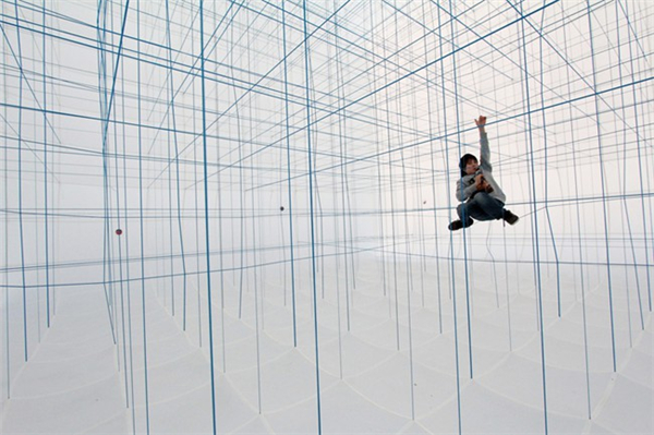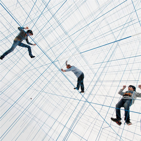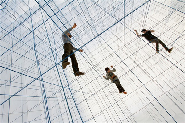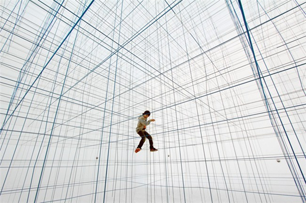 亲们有没有试过那种在很多线上悬浮攀爬的感觉?就像是在拍大片的感觉,有木有?看看奥地利设计组合Numen/For Use带来的艺术装置吧。他们在一个充满气体的立方体内从一端到另一端拉满了绳索,形成了一个小小的网格世界。这样,你就可以在其中任意攀爬,还能不能快乐的玩耍了?哈哈哈~