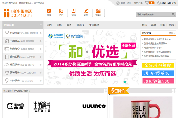 悦创以让“生活可以更有创意”为己任,为广大用户提供吃货神器、生活良品、创意办公、趣味数码、潮品装备、服装配饰等大类创意礼品。这些商品均经过悦创严格审核和评级,兼具设计感和实用性,相信每一个热爱创意和设计的人都可以在这里找到自己理想中的生活摸样。悦创欢迎一切有创意的东西,和一切喜爱创意的人。悦创做创意,又不只做创意;悦创做分享,又不只做分享;悦创做购物,又不只做购物。