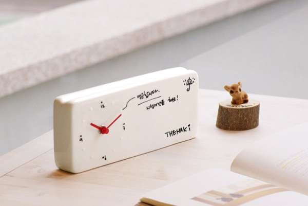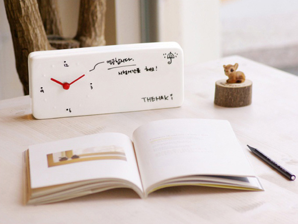 这是一款韩国DESIGN ONE旗下品牌thehaki出品的电子时钟,名为Memo Clock,它既是时钟,又是留言板。把代办事项记在钟表旁边无疑是最聪明的做法,用内附的水性笔在陶瓷上可反复擦写。Memo Clock台钟曾经获得了2009红点设计(Reddot)和好设计(GoodDesign)奖。淘宝购买