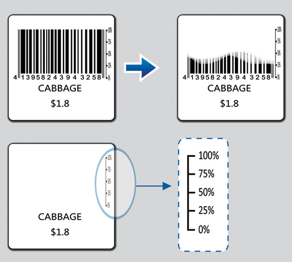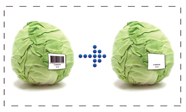 条形码在我们日常生活中随处可见,超市里的商品基本上都会用条形码来储存信息。是否遇到过在菜市场买菜被骗的经历,是否在纠结于不知道如果判断水果的新鲜程度,现在有个设计团队设计了这款产品,就可以帮助你解决这个烦恼,蔬菜和水果的新鲜程度都会在这样的一个条形码显示出来,条型码中不光储存产品信息,还可以显示商品的信息,随着时间的推移,条形码会渐渐的消失,从而告诉人们,这件商品过了保质期,清晰明了。