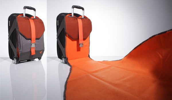 出门远行必备的就是一个行李箱,然而一般拖着一个行李箱到处乱跑很不方便,尤其是携家带口的时候。不免在什么时候需要找个坐着休息的地方,但是火车站,机场等一些地方往往是人满为患。考虑到这些问题,居住于加利福尼亚的美女工业设计师Daye Kim设计了这款贴心的创意拉杆箱。它不但具备出行时必备的拉杆箱所拥有的全部优势同时还备有一个可以展开的大坐垫,就像野餐垫一样可以让我们在找不到座位的时候可以把它展开铺在地上供我们安坐,十分方便、干净。为经常出行的朋友们提供了极大的便利!