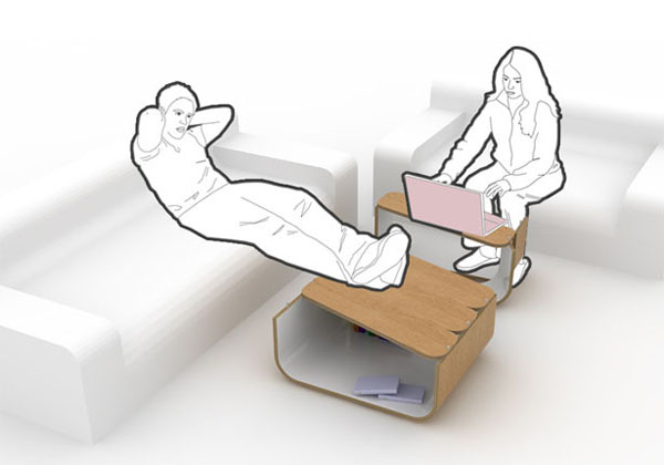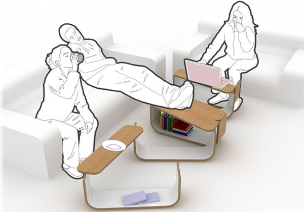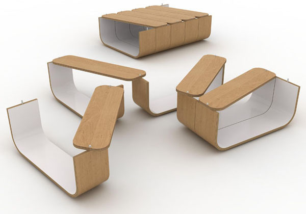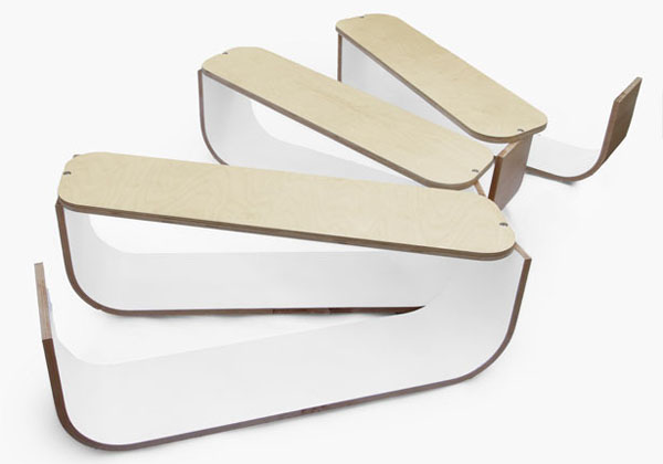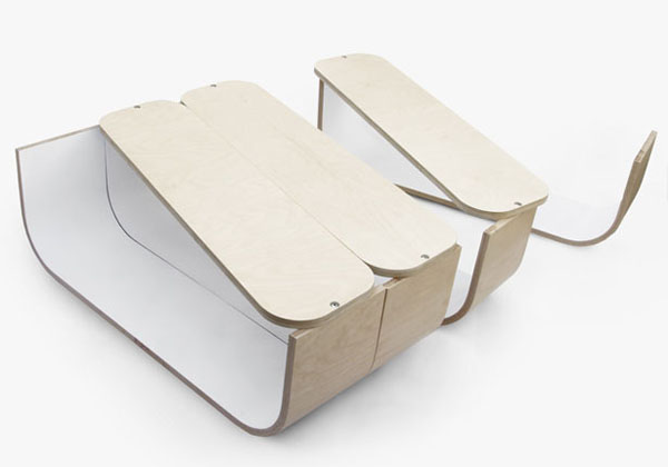 这个模块化的桌子与之前多新奇曾经介绍过的随意拼凑的花朵家具有些相似,因为它们都是使用了同样的概念。UMYD 桌子由4个模块组成,将它们合在一起是一个大的桌子,分开又成为了4个小的桌子,使用灵活,拆卸方便,多变的灵活性可以用效的增加使用空间。做为箱子存储东西和做为桌子放置东西都非常的不错。