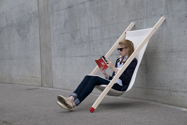 瑞士设计公司 BERNHARD BURKARD 带来的躺椅,简单明了的抓住了作为椅子的功能重点,去掉所有能去掉的,剩下的简单——清新而富有吸引力。尽管它看起来很危险,实际上却能稳定的倚靠在墙边,其中一个原因是支架底部的防滑涂层提供了安全的抓地力,看起来非常好舒适的座位会让你愿意冒险尝试。