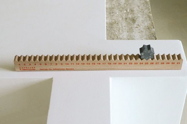 这款名为 Monthly Measure 的测量日历是一款个性独特的桌面日历,锯齿榉木和金属齿轮分别代表日期和星期,清晨起床后我们可以通过滚动齿轮来告别昨天迎接全新的一天。而日期之间的间隔则刚好是一厘米,因此它也可以作为度量标尺使用,比如丈量时间,测量日历会告诉你,最长的一个月也不过31厘米而已。设计师:Sebastian Bergne。