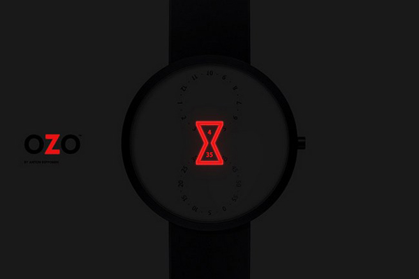 OZO 是由俄罗期设计师 Anton Repponen 在09年带来的一个创新的概念手表,曾在2010年的红点概念设计奖中获得最佳中的最佳大奖。这是一个看起来小巧简单、但又非常特别的一设计,表盘中由顶上的小时数字转盘和底部的分钟数字转盘组成,设计师主要是想让时间以一种全新的方式在手表中间显示时间,因此在中间用了一个经典的沙漏图标来框出当下的时间。