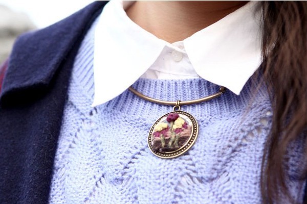 刚才介绍了一款非常有气质的创意戒指,现在再给大家展示一个非常有创意的项链。它是由毛线,铜质项圈和链子这些不同的材质完成的。小编一直很好奇这个作品是怎么样完成的!很喜欢这样的小饰品,很有特色。我是觉得我们应该对手工产品保持欣赏的眼光。才能发现它独到的美! 淘宝购买