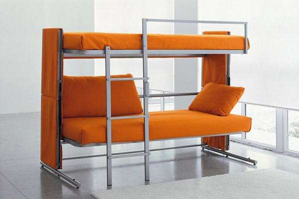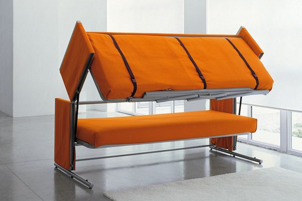 这是一个来自英国品牌家具商 Bonbon 出品的多功能折叠沙发床。之所以是多功能是因为它即可以当沙发使用又可以变成一个上下铺的双床位。这样的创意设计不仅使用上非常的方便,还可以节约好大一部分空间。生活中蜗居房间中的我们,如果有了这样的一个折叠沙发床,会使整个房间的档次提升了N个数量级别,适用于小户型提高生活质量非常有用哦。