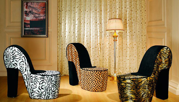美式豹纹奢华复古休闲椅,整个椅子看上去感觉雍荣华贵,而且坐感非常舒适,造型好像一个高跟鞋,即有装饰效果,而且非常实用,卧室,客厅,玄关摆放都很适合,而且椅子靠背比较高,可以方便靠着头部,也适合放在影音室,很出效果。
