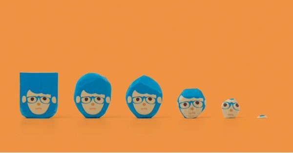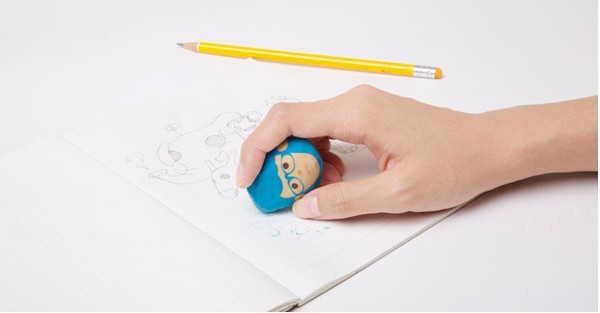 创意来自于生活,这不,你看下面这个新奇的设计就来自于对生活的观察。四个傻傻的盒子脑袋卡通角色可以随着我们不断的使用而呈现出好多种不同风格的发型,从长发到短发我们可以像理发师一样享受整个创作过程。将橡皮设计成这样是不是很有新意呢?只不过擦到脸的时候让人觉得好疼。