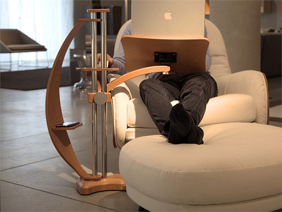这款笔记本电脑支架造型非常时尚,是一个不错的家居日常用品。看着很爽,不论是坐着,还是躺着,都可以通过调节以达到最佳的形式,在工作或者种种都感觉到舒适。支架上面可以置放鼠标、手机、咖啡等等。