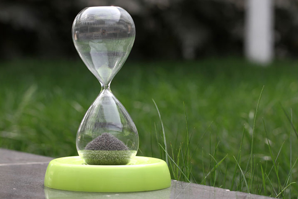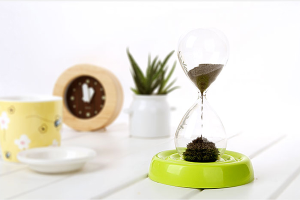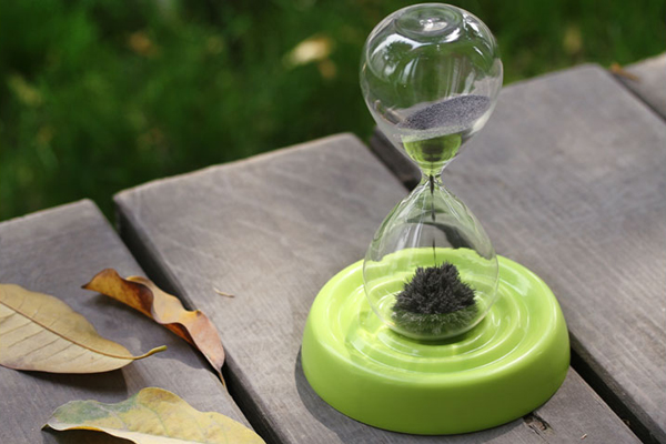 你可不要以为这是普通的时间沙漏,如果是那要的话,那么多新奇就没有必要发出来跟大家分享了。这个沙漏的名字叫磁力沙漏,之所以叫这样的名字是因为沙漏的里边装的不是细沙而是铁粉。在沙漏的底部内置了一块强磁钢,由于磁场作用,铁粉在洒落的过程中呈现一种磁力运动路线,而这种路线在我们看来就像一朵盛开的花一样。