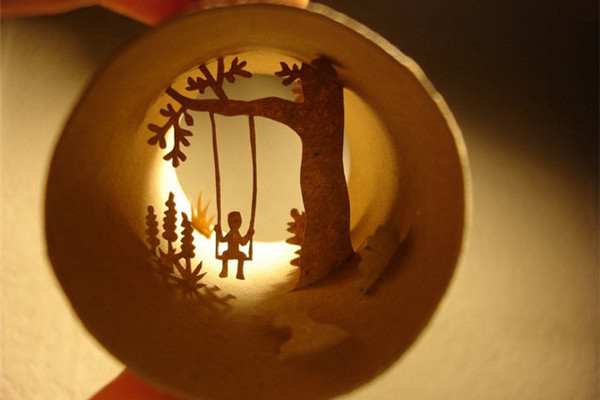 纸筒,往往是别丢掉的垃圾,但是世间不缺少发现美的眼睛。小小的纸筒中也可以成就新奇的世界。用与卷轴相同颜色的纸张剪出各种模样的图案,然后使用镊子小心翼翼的将小树、人物和动物粘贴在卷轴内创建出别具有层次感的立体场景。而在昏黄的光线照射下,这些场景还非常生动,仿佛正在向我们诉说一个个简单的生活故事。