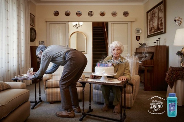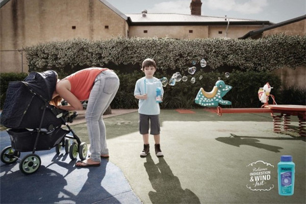 看到广告里面的这些图片,你是不是觉得好笑,是不是自己也有过类似的情况呢?今天鸡血哥吃得有点儿多,就对我的新奇的大鸟朋友不好意思地发生了类似的情况,要是有这广告上说的那啥药帮助就好了!Mylanta胃药能帮你缓解消化不良,避免这令人尴尬万分的「微风时刻」,而且还如一阵微风般迅捷有效。俏皮和轻度的幽默,让人会心一笑。