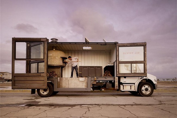 移动的披萨店,没听过吧?土鳖了吧?现在介绍的这个新奇的移动披萨餐车是有四位设计师的帮助完成,集装箱中光是意大利制造的传统燃木烤炉就占去了三分之一的厨房空间 ,但这烤炉的最高温度却可达800°C ,因此只需一分钟就可以新鲜出炉一个那不勒斯风格的比萨饼。这样方便的披萨店叫我等这些吃货怎么能不跟着追?