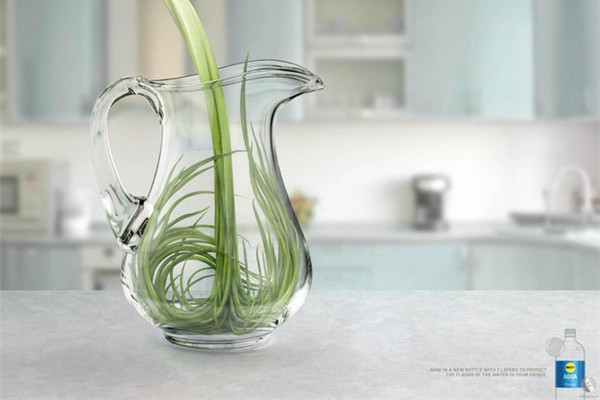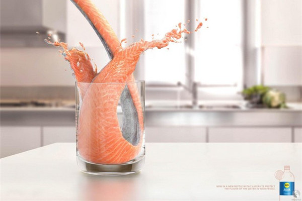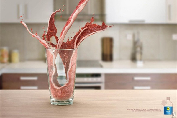 瓶装水广告,大家肯定见到过不少。什么康师傅啦!可口可乐啦!今天给大家介绍的这个新奇广告,无能从创意和卖点上说,都是相当的成功的!炎炎夏日,冰爽纯粹的纯净水是任何饮料都无法取代的解暑良品,因此你一定无法忍受正逢万分口渴之际、从冰箱里取出来的瓶装水却串上了牛肉、鲜鱼或其它蔬果的味道。于是这个卖点就产生了,一些列的创意广告也应运而生。
