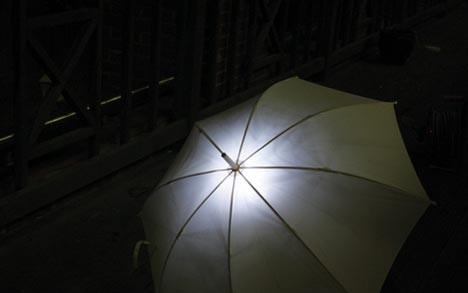 这把伞的造型没有什么特别之处,平时放在一边,丝毫不会引起你的注意,可别被它朴实的外表给蒙骗了哦!设计师Sang-Kyun Park赋予了它新的使命。下雨时,雨点打落在雨伞的表面,通过表层的PDVF薄膜转换成能量从而让嵌在伞中的LED灯发光,为您在雨中照亮前方的道路。雨越猛,能量越强,发出的光自然也会越亮的!