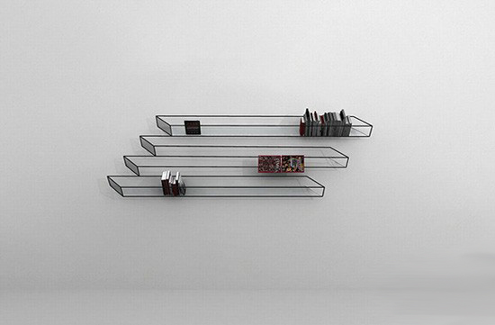 超简约的立体书架,看了一眼感觉是画在墙上的画,其实不然,他的确是一个真正的书架,看起来是4排其实只有3排。你看了之后会有什么想法呢,反正我是大爱,好想搬回家去。来自设计师John Leung的视觉作品。