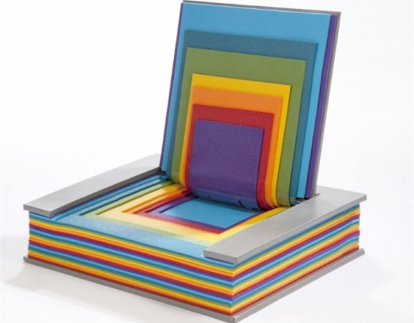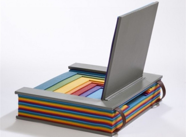 这样一款低矮的椅是专为书房或图书馆等而设计。毫无疑问书椅的设计是来自于我们常见的书本,将一些瑜伽垫来制作而成的书页裁开,并粘连在铝制的封面上,使书本在打开成为新奇椅子的时候,能更舒适的适应身体。根据不同的室内氛围,你还可以将瑜伽垫换成不同的颜色哦。