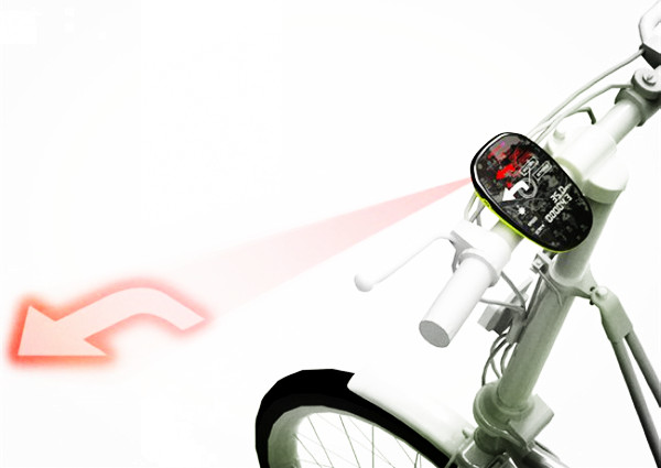 路痴们常常需要靠GPS导航来识别正确的前进方向,比如会一边骑行、一边低头查阅导航,这显然不是一个安全的做法。一个能让骑行者不必分心、更安全使用新奇导航仪的方式,这种GPS导航能将导航方向以强大的激光束在自行车前的路面上投影出方向箭头,为骑行者指示前进的方向,而且即使是在白天,路径上的导航箭头也将清晰可见。