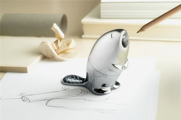 亲们,动物类型的卷笔刀会是什么样子呢?海狸作为啮齿动物的一种,海狸门齿锋利、咬肌发达。于是设计海狸卷笔刀,其整个外形设计简洁流畅,采用金属制作,有着非常精致的质感,而当你在实用它的时候,就像是,它的嘴巴正在有力的啃着你的铅笔,声音听起来非常的给力且具有质感。同时新奇。