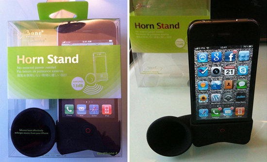 今天,多新奇介绍的又是一个iPhone的周边产品。当你听着音乐心情很high,想要放声高歌的时候却发现手机声音太小了。这时候你就需要这样一个大喇叭了。专为iPhone4设计。很有科技感的造型。又带有一点点的复古的味道。看起来手感应该很不错。套上就可以使用了。而且还能当手机支架观看电影。小7认为体积大了点,携带很不方便。当然,做摆设的话是没问题的,可以跟朋友得瑟下。这样一个小东西的价格却不菲,目前价格是25美元。