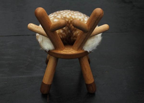 亲们,你们觉得怎样的椅子才最可爱呢?让鸡血哥来告诉你们什么是可爱吧,新奇的斑比小鹿座椅将卡通角色的特性元素完美融合到家具产品中,柔软舒适的人造斑点毛皮坐垫,而蹄脚和鹿角靠背则由橡木制成,整体小巧可爱。