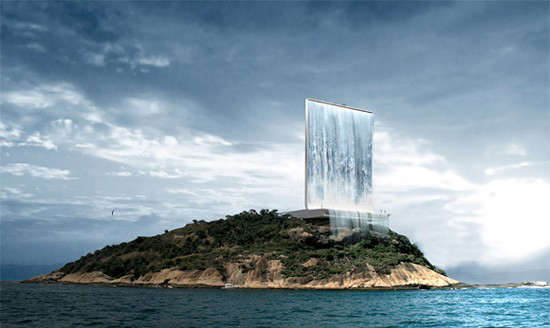 相信这应该是你见过的最壮观的景象之一,这是来自瑞士著名建筑设计公司RAFAA带来的太阳能瀑布。通过建筑周围巨大太阳能板将海水淡化然后高处流下来形成漂亮的瀑布,用来产生淡水。同时通过高落差进行水利发电,用于夜晚照明。在巨大瀑布建筑的顶部用玻璃结构,用于构建蹦极以及在玻璃顶端高空行走,借此吸引游客。周边还将建立礼堂,商店,餐厅等高档消费社区。当然,现在来讲它还是个假想出来的。