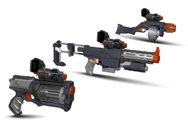 小的时候大家应该都玩过枪战类的游戏,就类似的那种手里拿着一把假的手枪。然后分成两个派别,互相开枪。现在,如果你有下面这套新奇的装备就又可以和小伙伴们一起happy了。它可以通过智能手机连接你的屏幕,记录战况,打中得分。不像小时候,打中照样赖皮继续奋战。怎么样?是不是有意思?