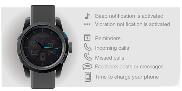 现在给大家介绍一个非常有意思的手表,它就像一个贴心小管家,能够时时刻刻监控你手机上的时时动态。电话没接到,有新信息发来。日历提醒,有邮件没有接收等等。你是想接收的时候出现蜂鸣声还是震动提示。这样,你再也不会错过一条重要的信息了。并且,它还有遥控手机拍摄的功能。这样你就可以和你的小伙伴们愉快的自拍了。嘿嘿!