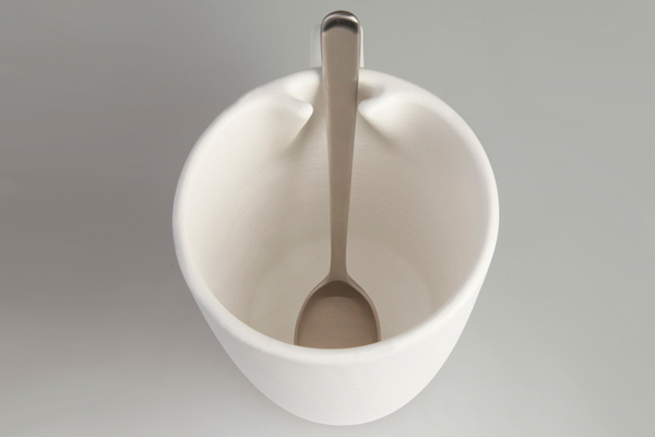 这是一个很有创意的咖啡杯,它可以将搅拌咖啡的勺子固定在杯子里,这样在我们饮用咖啡的时候勺子就不会到处乱跑了,喝咖啡也就变得很轻松了。有些时候创意就是体现在我们对事物的理解和发现上,相信如果哪家咖啡馆采用了这样的咖啡杯那么客人也一定会体会到咖啡店的用心和关怀。