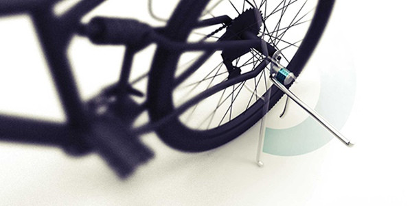 亲们,告诉大家一个很不幸的消息,鸡血哥前两天的自行车给人偷了(T.T)。气死偶了。现在给大家介绍的这个新奇的自行车脚架锁非常给力,它通过一个小树叉的结构,将车子轮子上的钢圈锁住,然后,在脚架那边有密码,这样,就非常方便,不用每次拿出又大又笨重的锁出来。很犀利有木有?