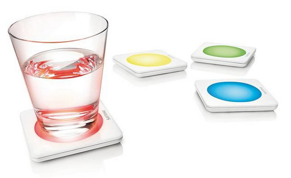 现在给大家介绍一个新奇有创意的小玩意儿。如果大家喜欢社交,经常出没各种party,就会知道一个普遍的问题,那就是我们往往分辨不出自己的杯子是哪一个。在这个时候是非常尴尬的,作为做灯具出名的飞利浦公司就帮您解决了这个问题,它设计研发了一款发光杯垫,无论你在什么样的场合,多彩的、淡雅的光线都能够将众多杯子轻松区分开,方便又好看。