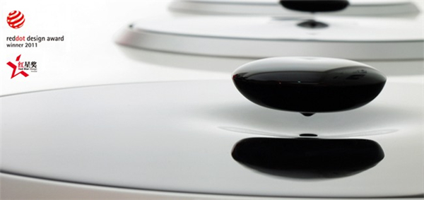 这个神奇的手盆是由北京唐恩设计(TONEDESIGN)专为惠达卫浴的高端公共场所市场而设计的磁悬浮水盆。他们的创意来源于水滴在水面上激起的涟漪,悬浮在盆面上的浮子既是金属香皂、也是出水开关。当浮子位于正上方时,水流处于关闭状态,使用时只需将浮子挪到旁边 ,水流就会从出水口喷出 。很美丽有木有?