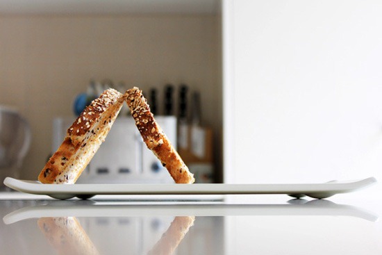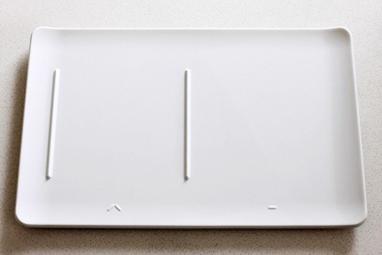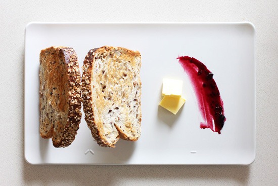 相信这一定是一个懂得生活的人设计出来的盘子,盘子的设计非常的巧妙,结构也并不复杂,只是在盘子上边多个两个棱,有了这两个棱放在盘子上的面包就可以相对的立起来了,这样面包就可以不用所有的全部接触到盘子上面,不用碰到旁边的奶油。