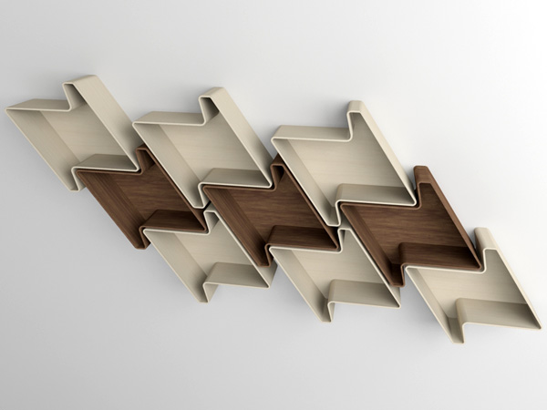 这是一个可以自定义组合的书架,每个模块由夹层复合板制作,一共2种颜色互相搭配颜色组合起来。一个模块只需要2颗螺丝固定,可组成任意数量任意形状的书架。组合的过程本身就是一种乐趣,再加上马赛克样式的视觉效果,让整个设计都非常的巧妙。设计师:Julia Quancard。