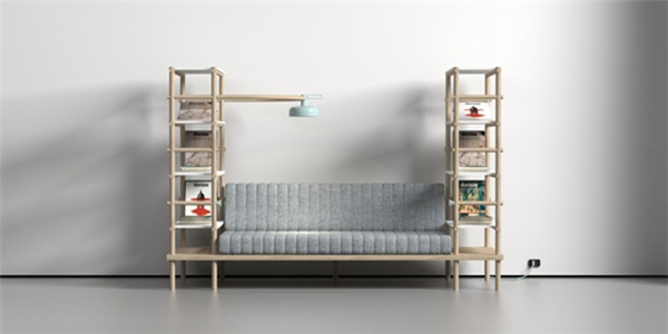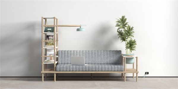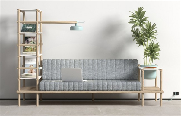 亲们,你们家的沙发都只是不是只有一种功能,就是让你舒服的坐着或躺着。那如果给你让你想一想可以加上别的一些功能,你会怎么设计它呢,下面这款沙发是由Burak Kocak伊斯坦布尔的一位90后年轻设计师设计的沙发,它将沙发设计成两边有搁架可以摆放植物花盆、可以收纳杂物和书籍、集成了一个数码设备充电口、顶部还有一个吊灯为深夜阅读提供照明。喜欢么?