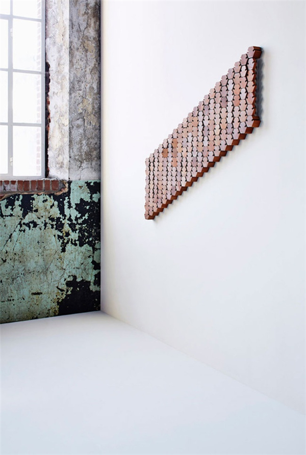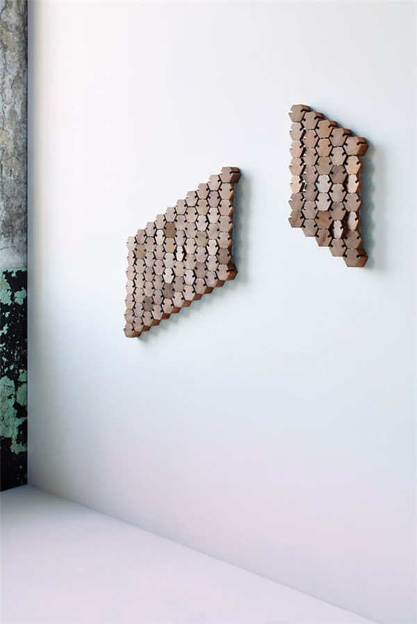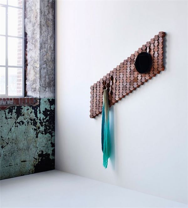 亲们,你们家的衣橱,有露在外面的么?一定没有吧!下面这个聪明的墙挂衣橱就可以实现哦。它是由众多的六边形木块串联组成,当你需要找个地方挂靠外套、围巾、帽子、或者其它杂物时,可以翻转一个或多个六边形 ,其中的倾斜缺口就可以用来挂放物品。并且,这玩意儿挂在墙上非常高大上好不好!