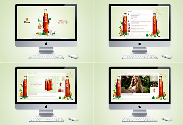 RAW是百事旗下的一个天然成分可乐的新品牌,主要针对北欧市场,Martin Stousland帮他们设计了品牌视觉。下面的这一组图片就是说明了RAW的品牌广告效果,非常的时尚前卫,整体的风格也给人冰爽的感觉,主体的字符是 THE NEW TEMPTATION。