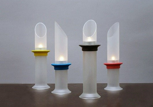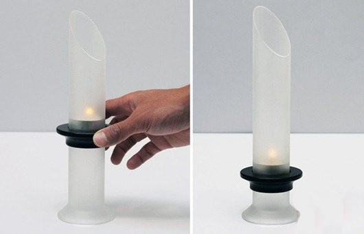 这是4个不同颜色的烛台,它的设计师 Oscar Diaz 将其命名为 Tubo,它的外层是磨砂玻璃管,蜡烛放置在里面可以产生朦胧光的感觉,也可以防止蜡烛倒在桌上。 玻璃管上也有一个磁铁的圈圈,通过磁吸可以控制烛台的上下移动,像移到哪就到哪。从它的简介设计中可以看出来它真的是充满了浪漫气息。