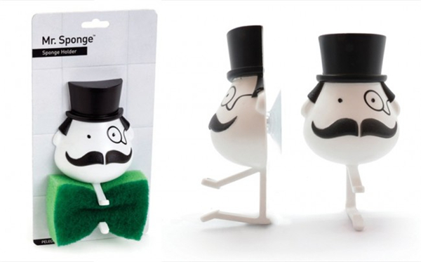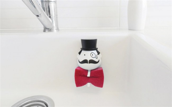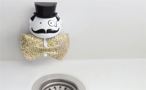 亲们,你们有关注过身边的那些常用小玩意儿么?有没有觉得有一些实在是太难看?以色列设计师Peleg design就关注了厨房里面的小小的刷碗海绵,发现如果就直接放在桌面上,很容易把高大上的厨房变得很low,于是,他努力并推出了百洁刷挂架Mr. Sponge,他可以解决我们这样的烦恼。看看看看,这些刷碗海绵是否变成一位绅士了呢?