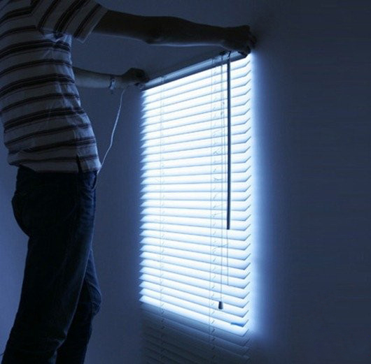 如果你是一个辛苦的蜗居蚁族的话,你的居住环境是否没有窗户呢,你希望有这样的一个窗户可以为你创造出阳光射入房间的感觉吗,百叶窗的叶子采用EL冷光片,就像阳光照射在上面一样,通过上面的塑料管进行控制亮度,外形跟真的一样。