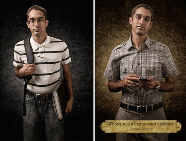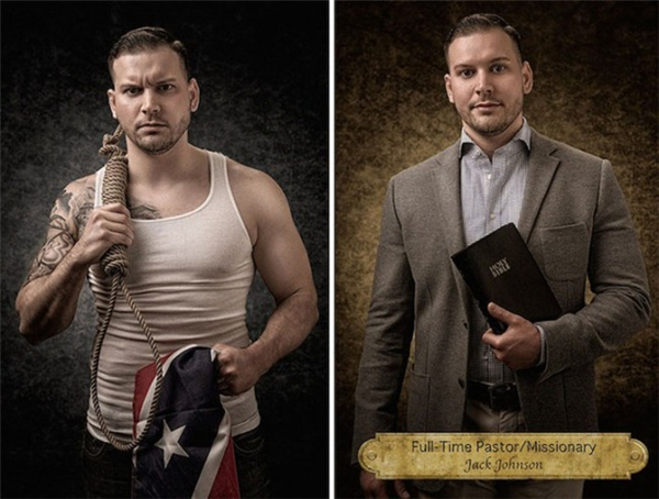 看到开跑车的人,你们会想到。哇,这个人一定是高富帅饿。看到印度人,你们会想,这个人会不会是恐怖分子?又或者,看到黑人,你们会想,这个人会不会是暴徒?请赶走你们的固定思维吧,下面这组图片能展现给我们一些不一样的状况,每组图像都由同一个人扮演两种人组成,因为第一印象,人们会在看到第一张照片时在脑海里形成一个固定的人物印象,但这种印象马上会受到第二张照片的强烈冲击。
