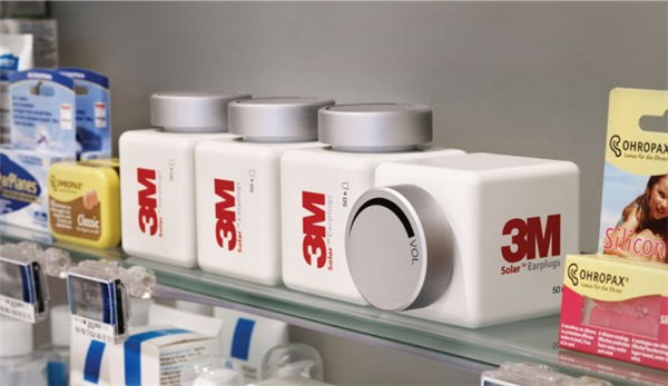 如果你们遇到很好的产品却卖不出去怎么办?嘿嘿嘿,当然是想到鸡仔啦!开个玩笑,想到我也没用的。答案是做一个漂亮和有意思的包装吧!设计师将高保真音响系统上常见的音量加减旋扭巧妙的融合到了包装盖上 ,简单而有效的传达了消音耳塞对周围声音的阻隔效果,这样你就可以很形象的知道这耳塞的效果啦!