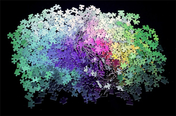 小伙伴们,你们当中一定有人在玩或者已经玩过拼图了吧?但是现在,请准备好你们的十二克拉钛合金眼吧,这个拼图是由Clemens Habicht创造的,这里每一片拼图的颜色都是有异于其它拼图的独立颜色,1000片拼图正好是CMYK色域里面的1000种不同色彩。这样「丧心病狂」的拼图,就算是对颜色非常在行的人,也得小心翼翼的拼。
