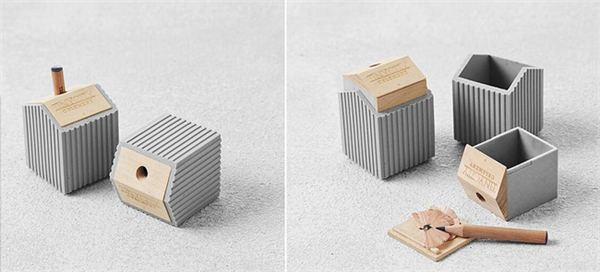小城市(Tiny City)系列文具作品是由台湾叁个设计tripleliving工作室创建的,包括了铁皮屋卷笔刀、骑楼笔筒、笔帽、名片座等,将建筑意象带到桌上文具中,从而营造属于桌面的小城市风景,令人赏心悦目。所有的这些文具采用的都是由水泥和橡胶做成的软水泥制成。非常有质感!