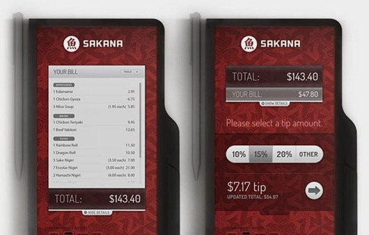 这是一款与现代比较结合的数字化结账系统,在你用餐或者是其他消费项目之后,它的上面会记录消费的记录、钱数,你可以选择利用刷卡,或者是网上支付来结账。当然,如果是AA制得话,也可以自行单独选择所消费的进行支付,设计师 Adrian Taylor 设计。