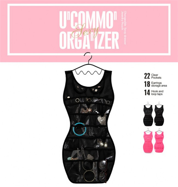 喂,那个女仔,说你呢,怎么梳妆台又是这么乱?邋里邋遢的,以后还能找到像鸡仔这样的男票么?哈哈哈,现在给大家介绍一个性感时尚的首饰收纳设计,整个首饰收纳袋就像是一条漂亮性感的S裙,简约且优雅,每次你的那些小玩意儿不戴了就可以扔给它,稍作一归类就看起来十分舒适有木有?