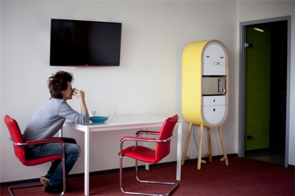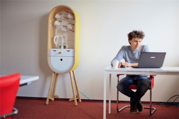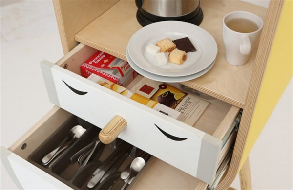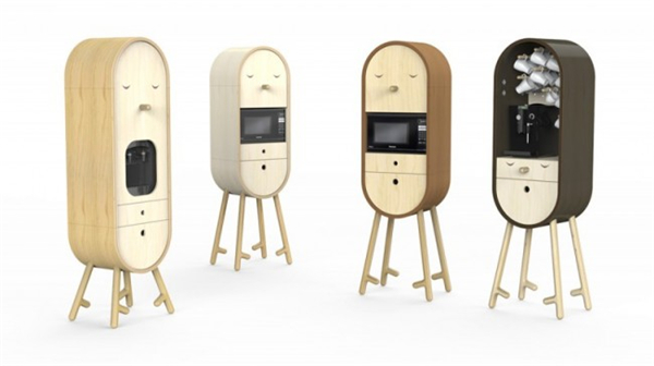 设计必须要有一点儿小情趣,下面这款设计就相当的有料,木材的选用让产品瞬间亲切友好起来,这一胶囊状的迷你厨房采用模块化的设计,根据不同的需求,可由两至三个不同的柜子组成 ,比如杯盘 、餐具、咖啡机、甚至于微波炉都能在这个修长的身板内找到自己的位置。怎么样?很实用吧!