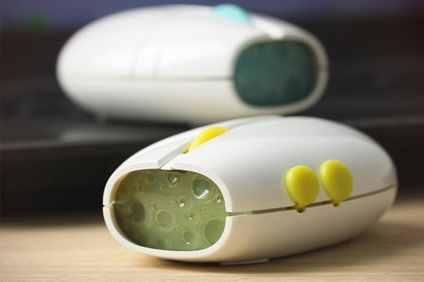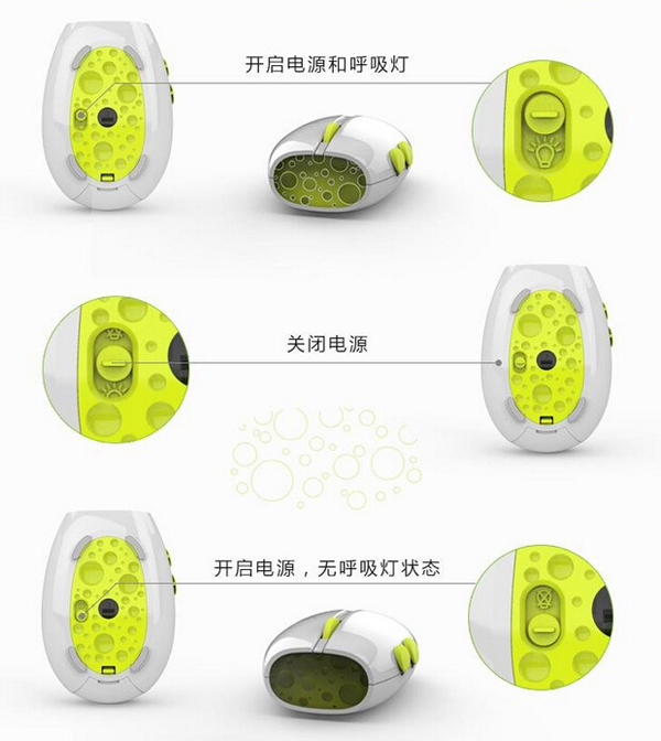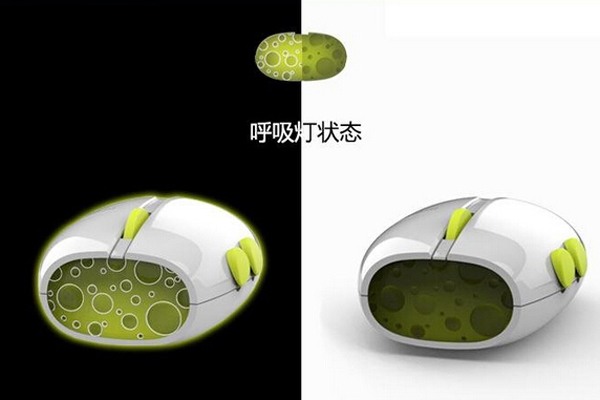 这是一个活的鼠标,在使用它的时候如果三分钟无操作它就会自动进行休眠呼吸状态,感觉就像是萤火虫在飞一样,有意思的是它还带你一般鼠标没有的重力感应,在使用它的时候只要轻松将它立起就会自动关闭电源。