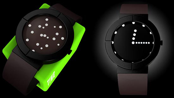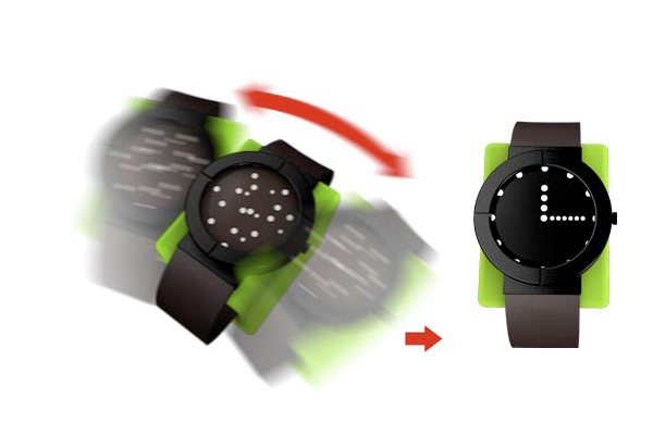 这是一个名为 TIWE 的手表,它的灵感来自于夜空中的繁星。整个OLED表盘屏幕上,布满了大大小小的白色圆点,它们都在随机运动着。当你摇一摇手表的时候,这些小圆点会自动组合成分钟和时钟,显示出当前时间。这是一个出自中国设计师之手的产品。设计师:吕中方
